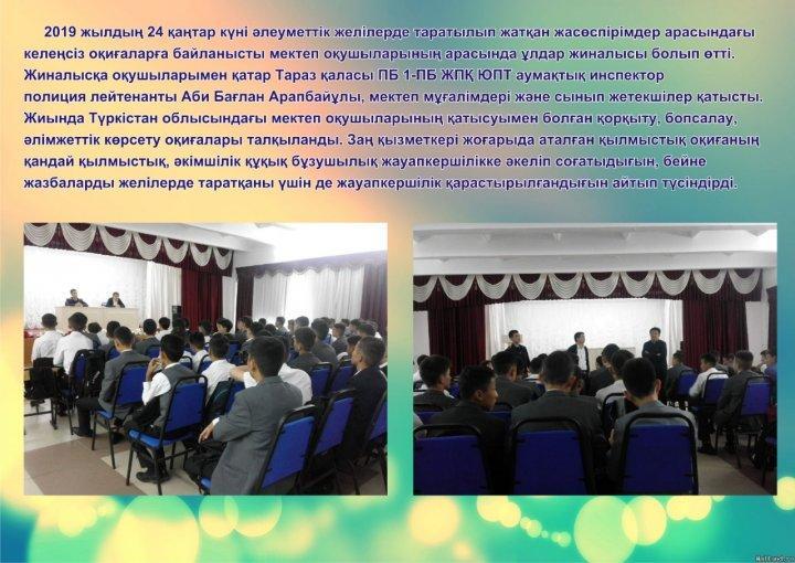 25 январь 2019 0 1 2 3 4 5 "Жасөспірімдер арасында құқық бұзушылық пен қылмыстың алдын алу" тақырыбында профилактикалық түсіндіру жұмыстары
