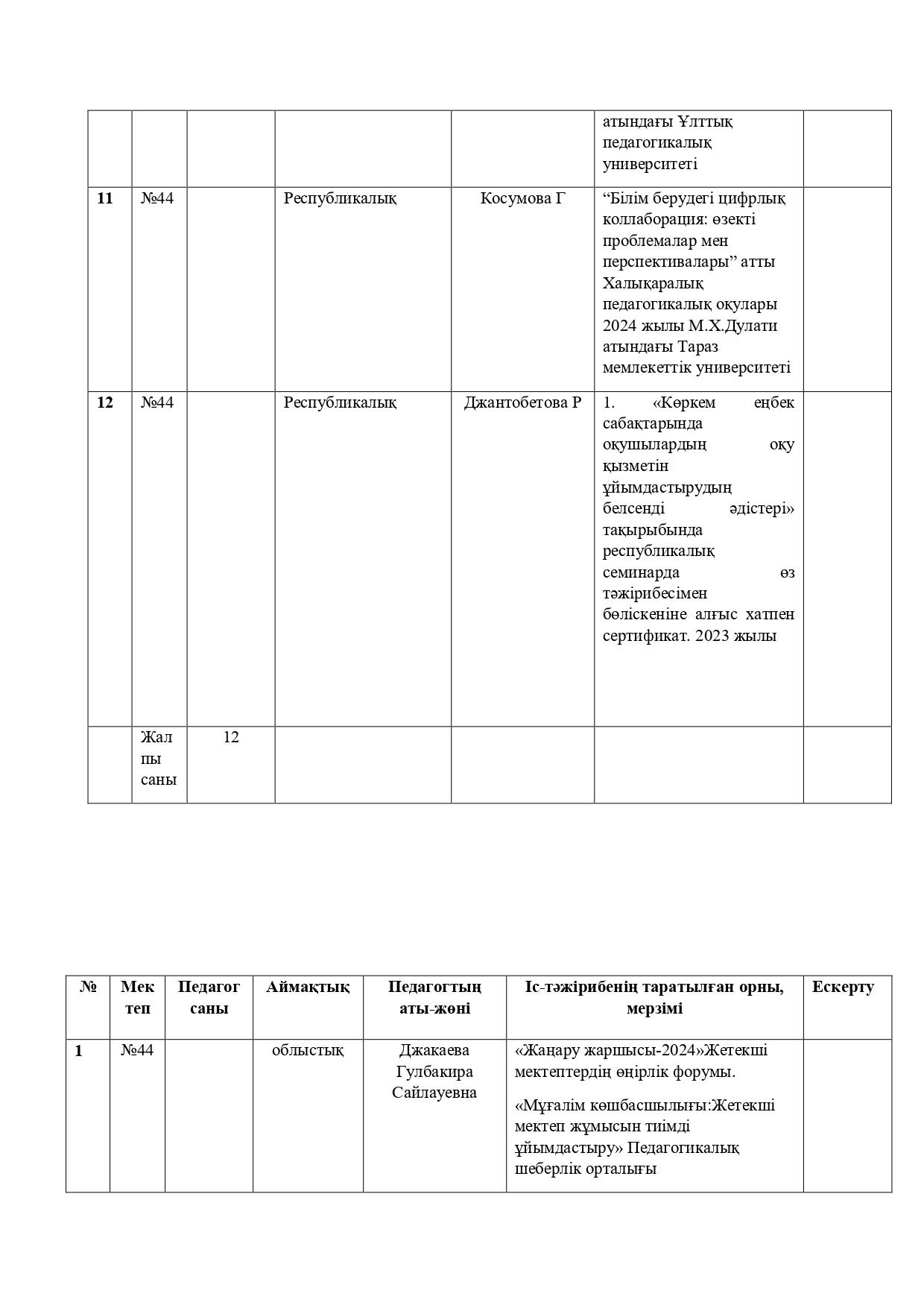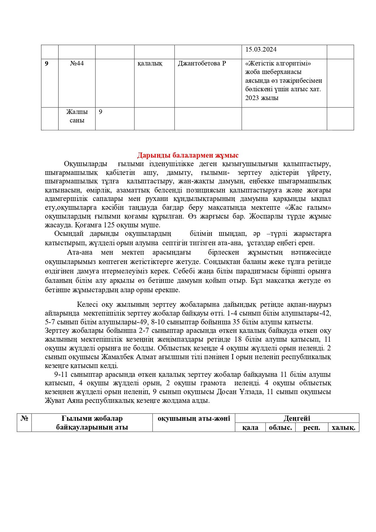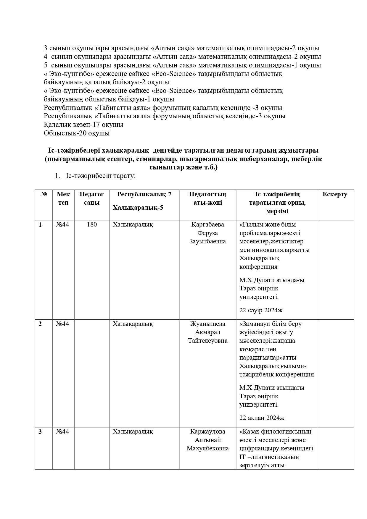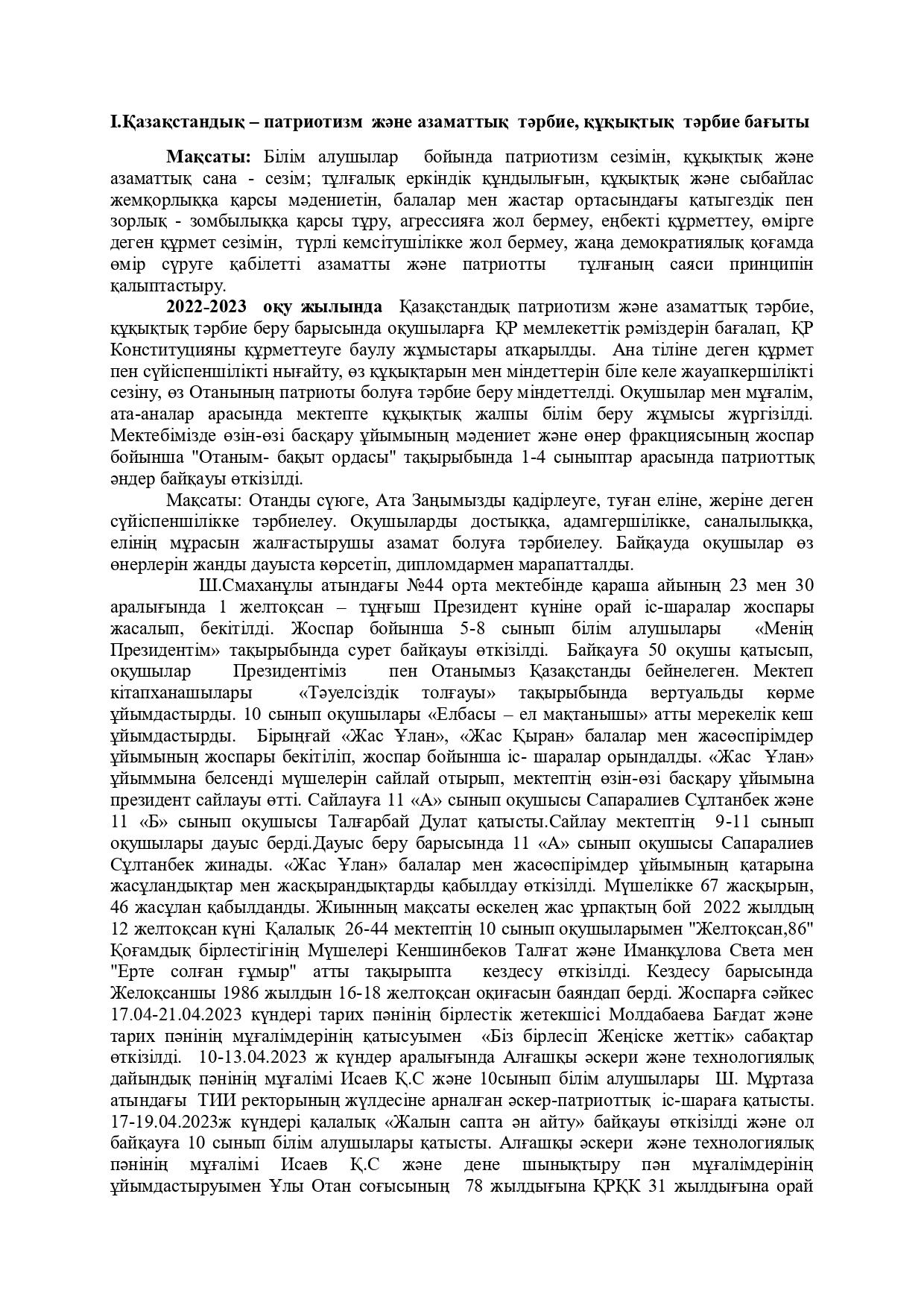 «Жамбыл облысы әкімдігінің білім басқармасы Тараз қаласының білім бөлімінің Ш.Смаханұлы атындағы №44 орта мектеп» коммуналдық мемлекеттік мекемесінің өзін-өзі бағалау ҚОРЫТЫНДЫСЫ » СШ №44