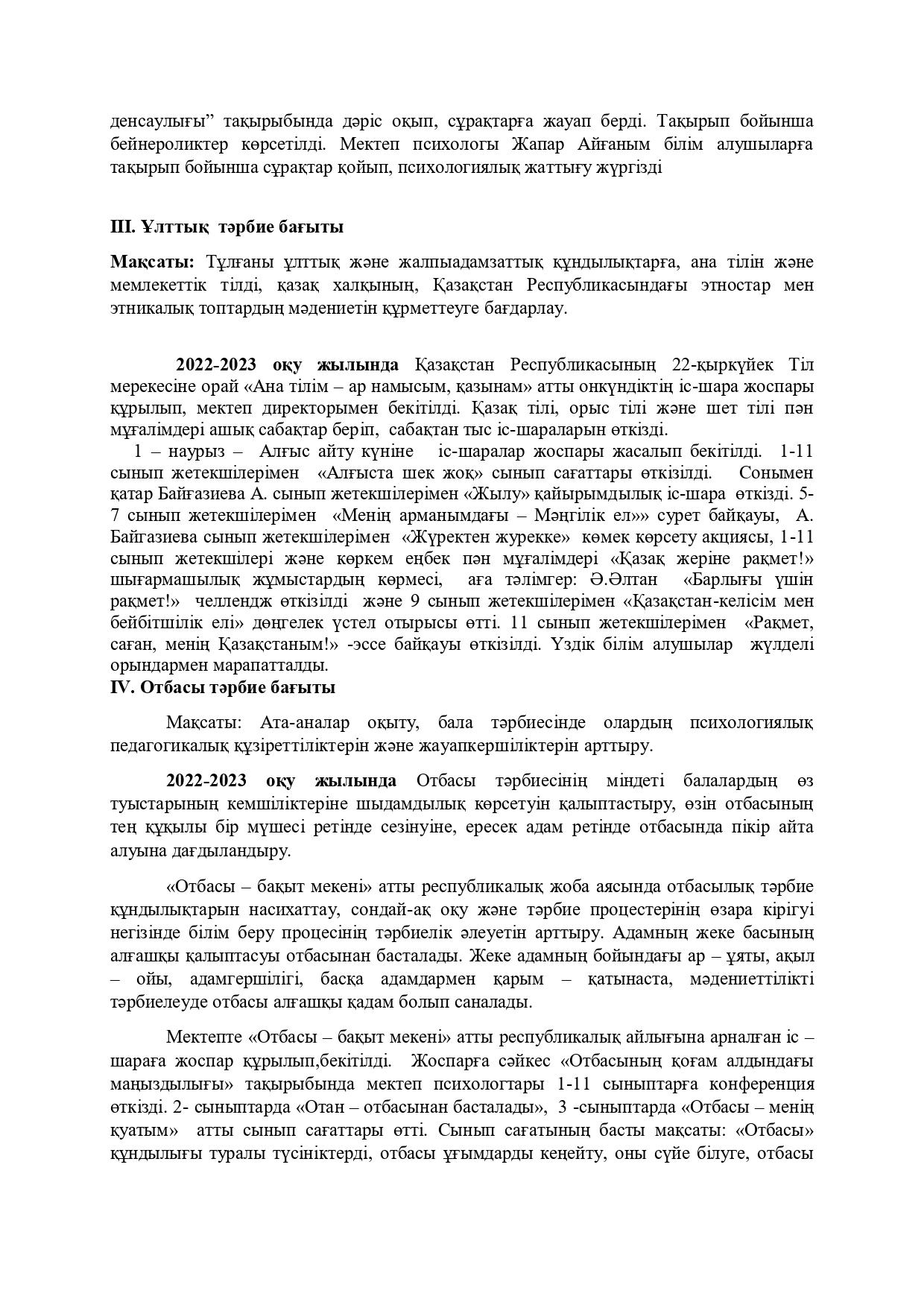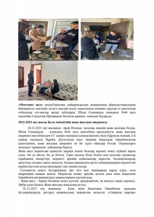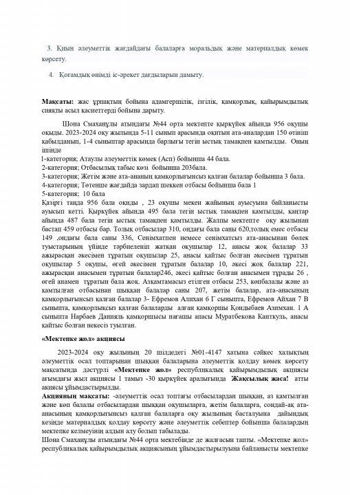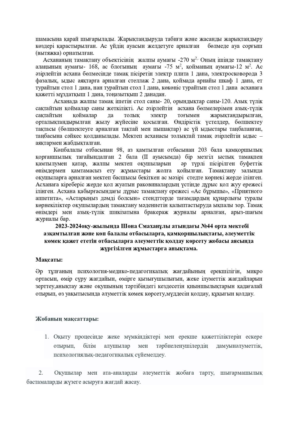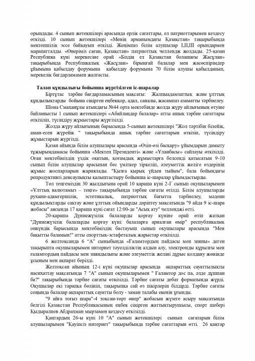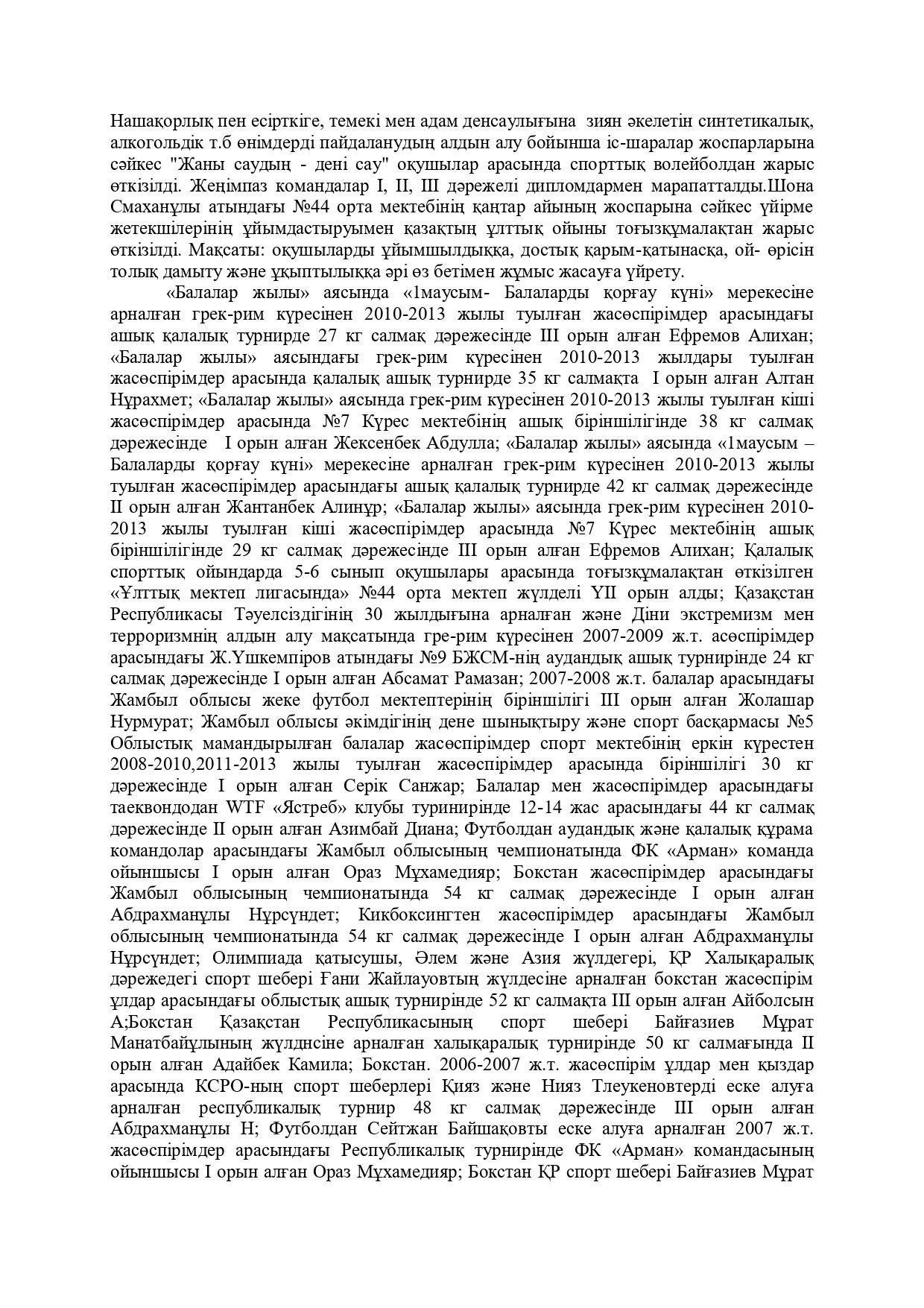 «Жамбыл облысы әкімдігінің білім басқармасы Тараз қаласының білім бөлімінің Ш.Смаханұлы атындағы №44 орта мектеп» коммуналдық мемлекеттік мекемесінің өзін-өзі бағалау ҚОРЫТЫНДЫСЫ