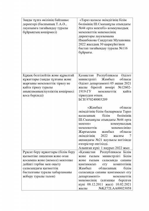 СШ №44 » Ақпарат » «Жамбыл облысы әкімдігінің білім басқармасы Тараз қаласының білім бөлімінің Ш.Смаханұлы атындағы №44 орта мектеп» коммуналдық мемлекеттік мекемесінің өзін-өзі бағалау ҚОРЫТЫНДЫСЫ