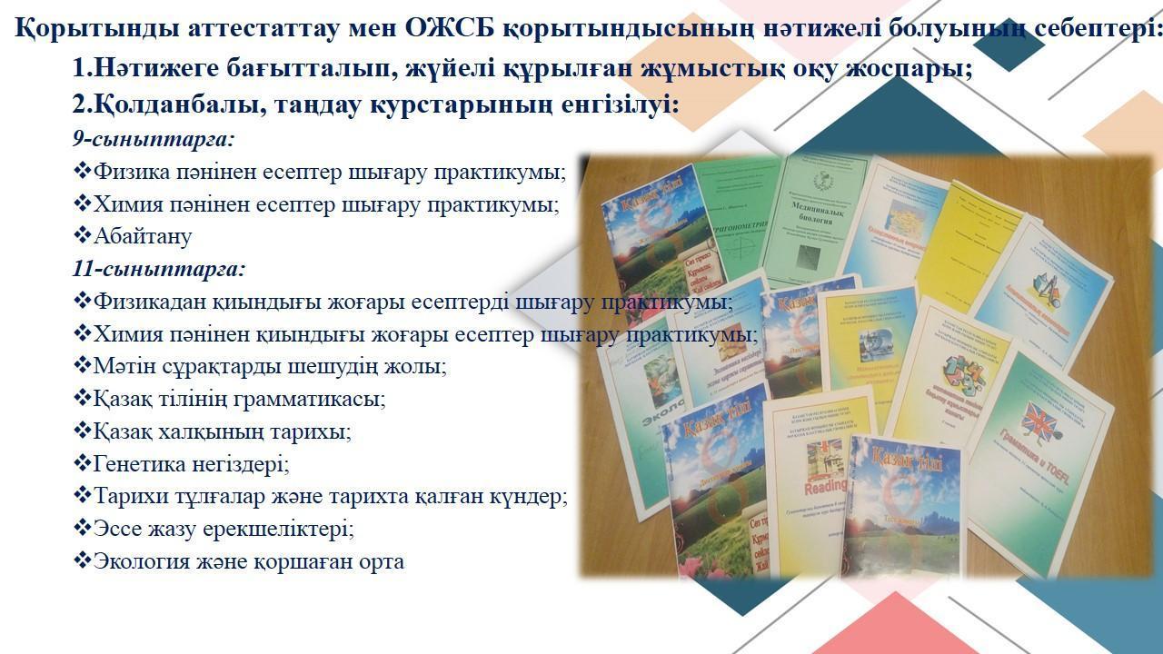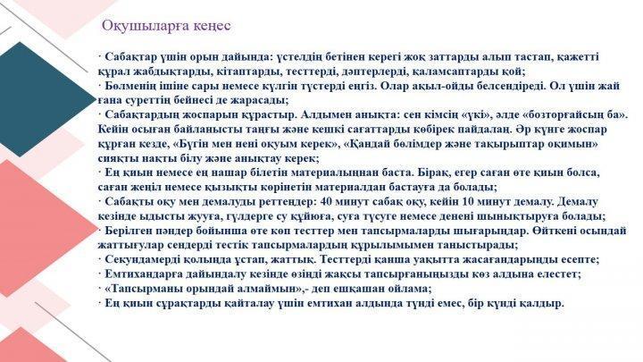 18 апрель 2019 0 1 2 3 4 5 Оқушылардың оқу жетістіктерін сырттай бақылауға дайындық деңгейін жетілдіру жолдары