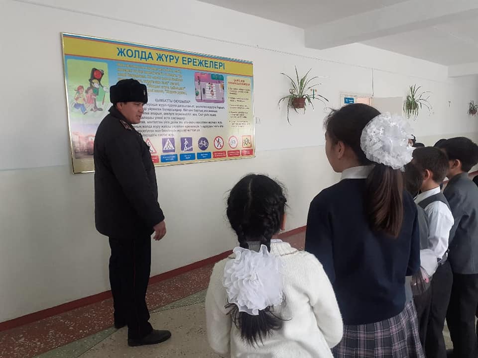 Тараз қаласы БПП аға лейтенанты Р. Мырабилдаев және Ж.Усенов Шона Смаханұлы атындағы №44 орта мектебінің бастауыш сынып оқушыларына "ЖОЛ ЖҮРУ ЕРЕЖЕСІ" туралы дәріс оқыды. Дәрісте оқушыларға жолда абай болуларын, бағдаршамға қарап жүрулерін, көк тайғақ кезінде жолда қауіпсіздік ережелерін сақтауларын, сонымен қатар жаяу жүргіншілер жолағында сақ болуларын ескертіп айтты.