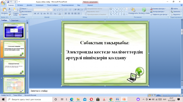 Информатика пәнінің мұғалімі - Әбу Мөлдір Асқарқызы 8 "А" сыныбында "Электронды кестеде мәліметтердің әртүрлі пішімдерін қолдану" тақырыбында синхронды түрде ашық сабақ өтті