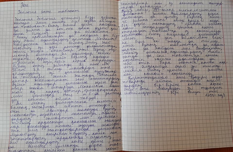 Экологиялық білім берудің жалпыреспубликалық апталығынын аясында өткізілген 1-4 сыныптар арасындағы сурет байқауы және 5-11 сыныптар арасында эссе байқауы өткізілді.