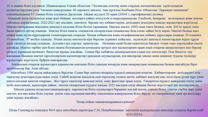 Құрметті қамқоршылық кеңесінің мүшелері! Құрметті ата-аналар! » СШ №44