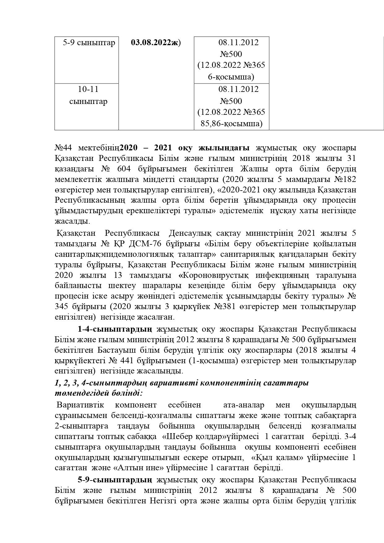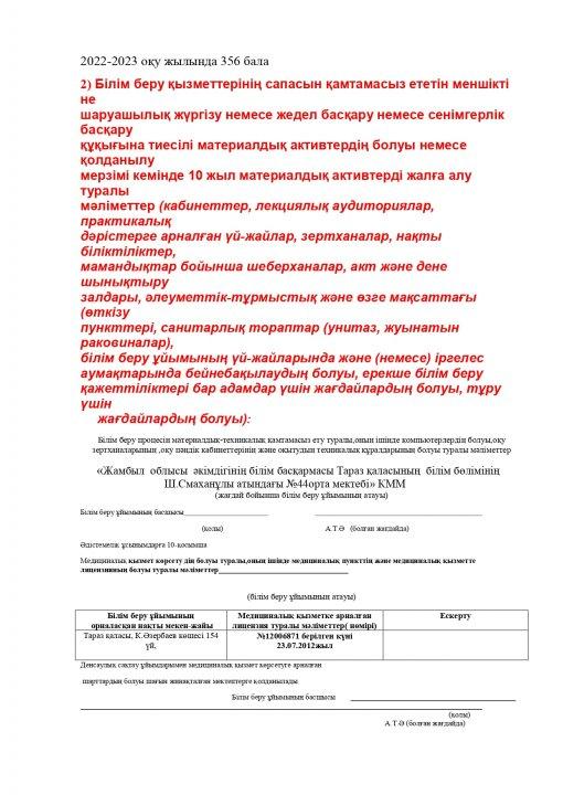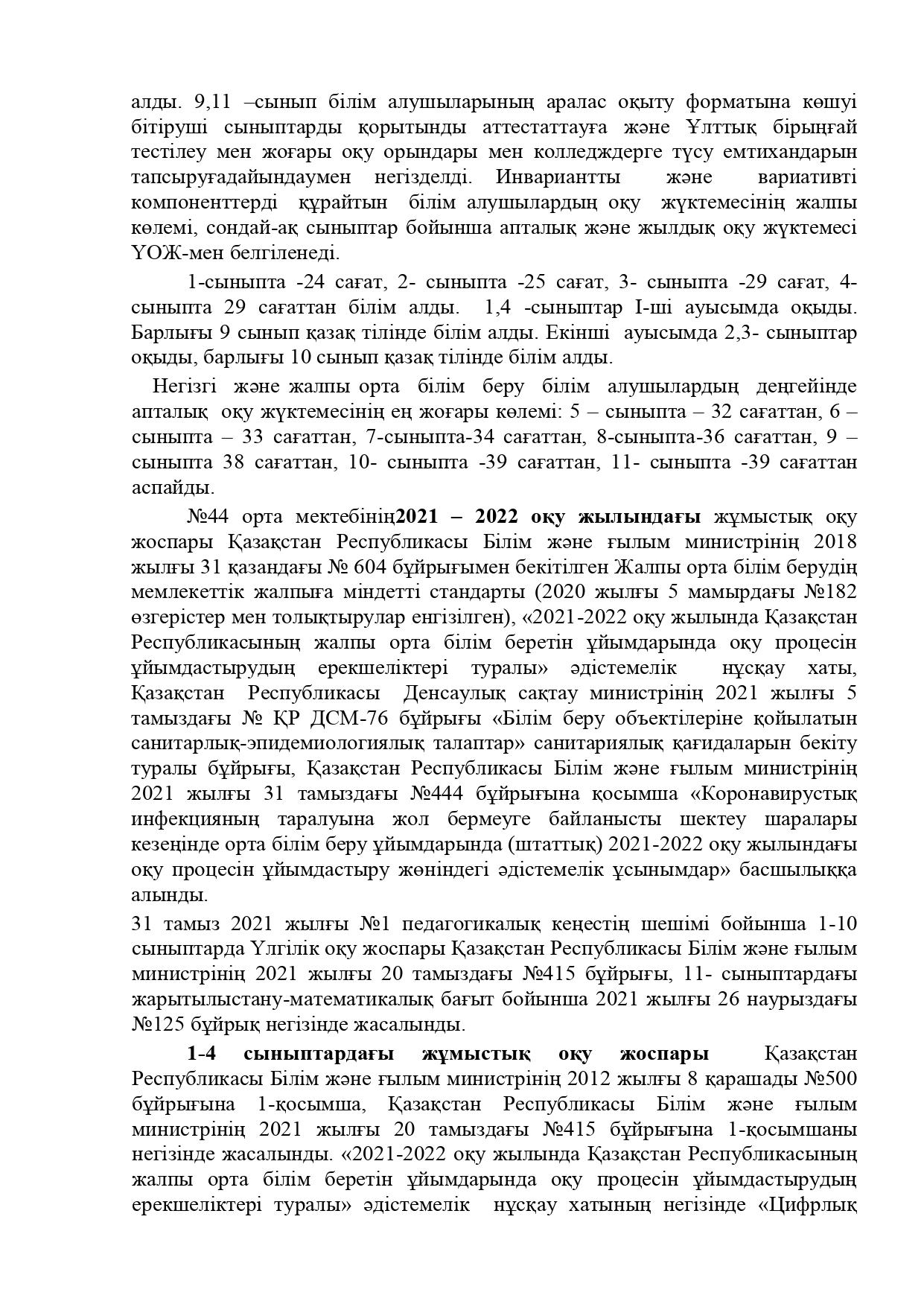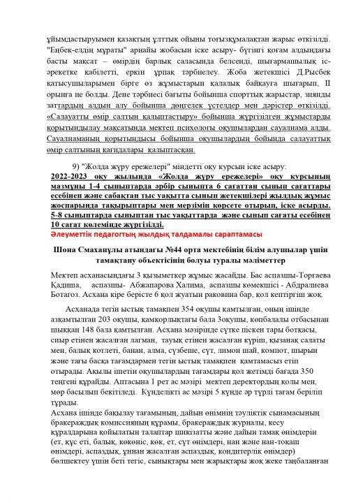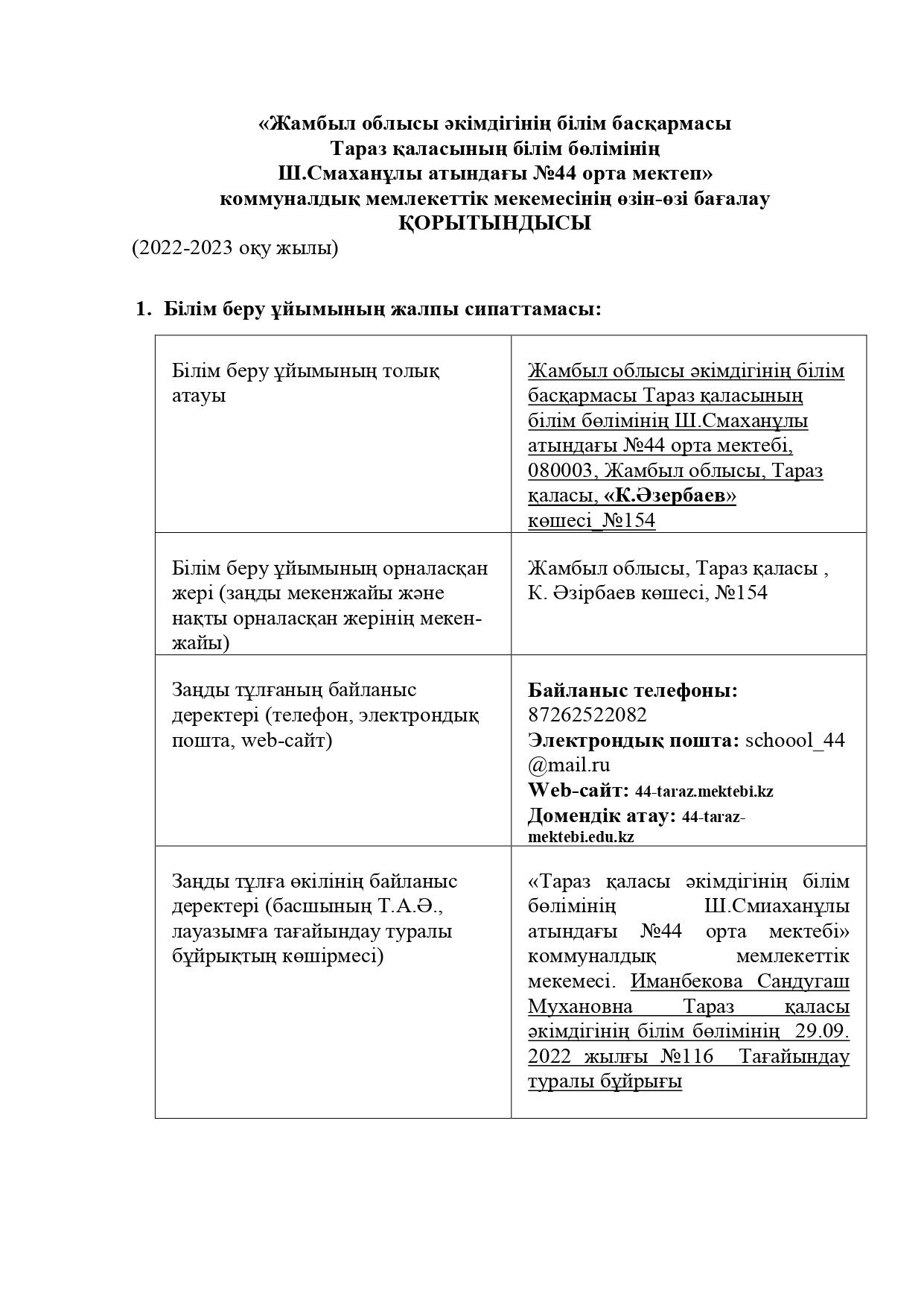 «Жамбыл облысы әкімдігінің білім басқармасы Тараз қаласының білім бөлімінің Ш.Смаханұлы атындағы №44 орта мектеп» коммуналдық мемлекеттік мекемесінің өзін-өзі бағалау ҚОРЫТЫНДЫСЫ » СШ №44