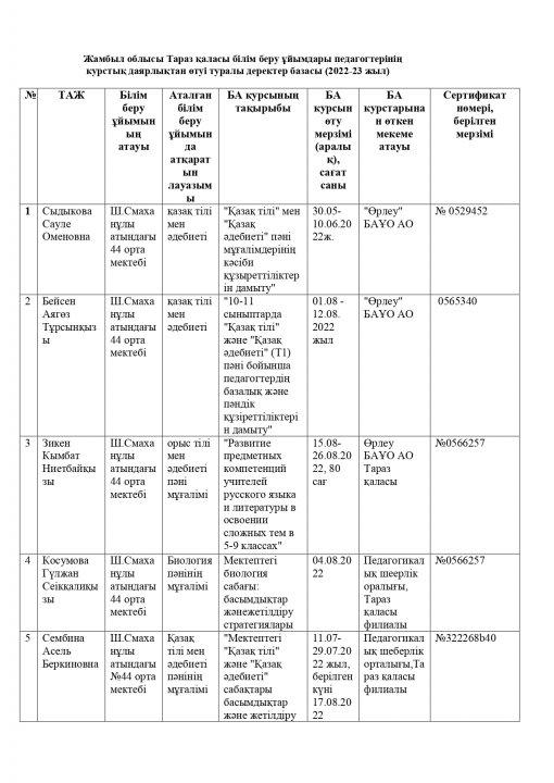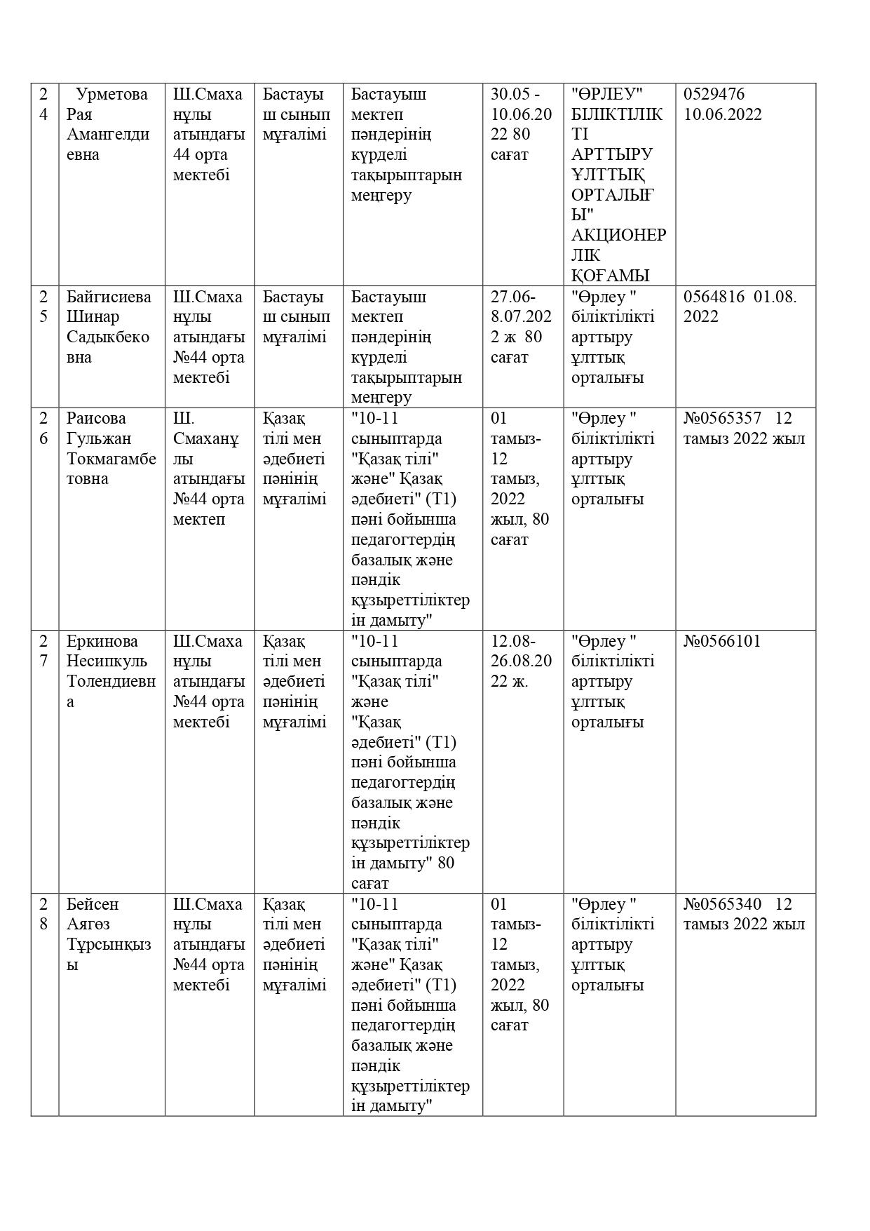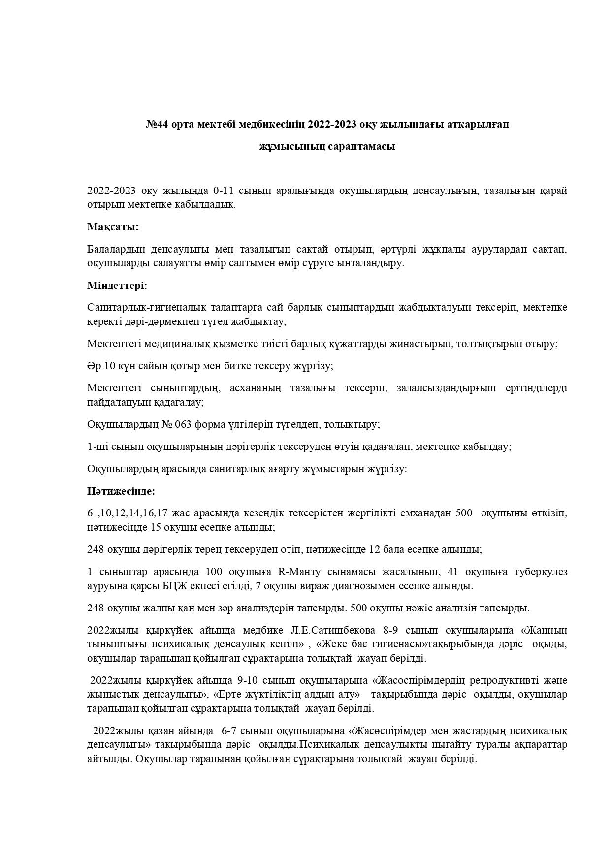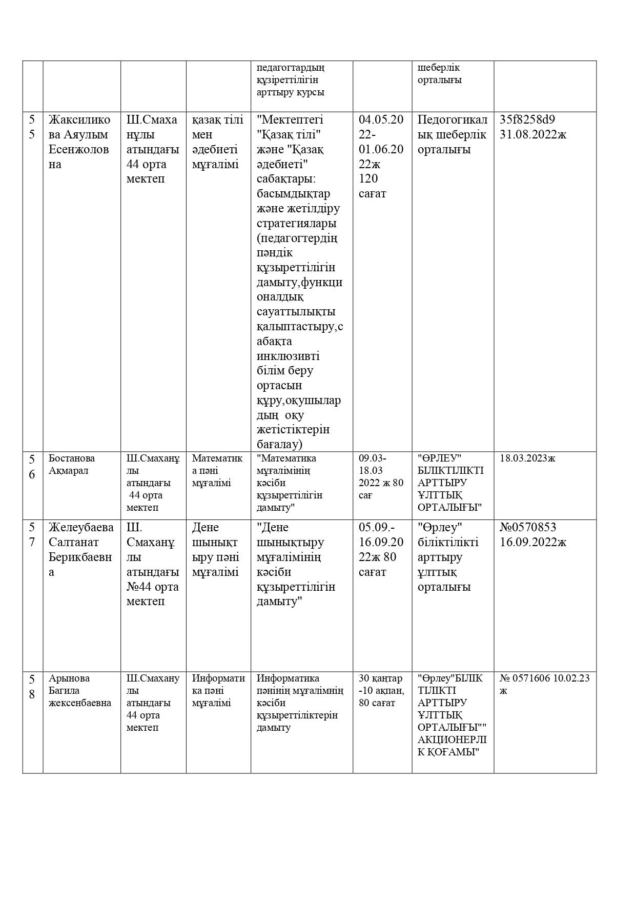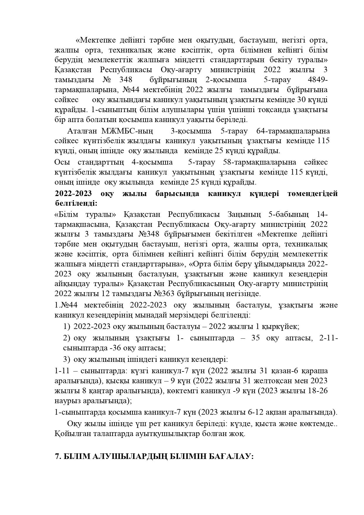 «Жамбыл облысы әкімдігінің білім басқармасы Тараз қаласының білім бөлімінің Ш.Смаханұлы атындағы №44 орта мектеп» коммуналдық мемлекеттік мекемесінің өзін-өзі бағалау ҚОРЫТЫНДЫСЫ » СШ №44
