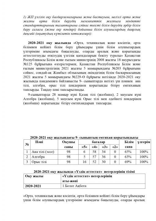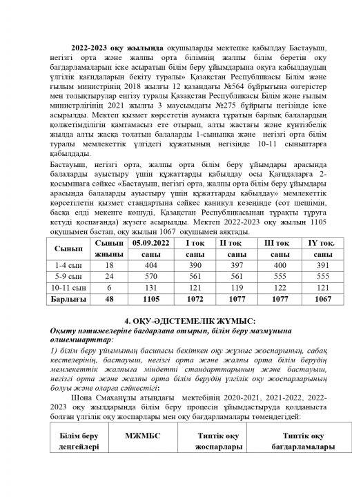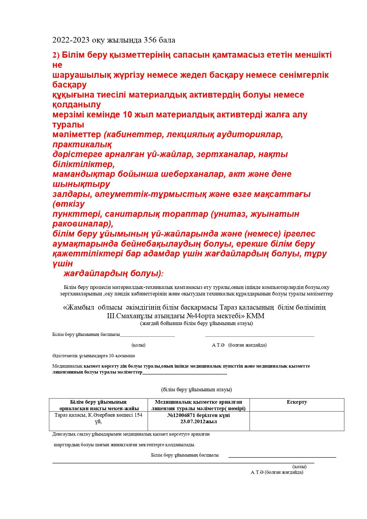 СШ №44 » Ақпарат » «Жамбыл облысы әкімдігінің білім басқармасы Тараз қаласының білім бөлімінің Ш.Смаханұлы атындағы №44 орта мектеп» коммуналдық мемлекеттік мекемесінің өзін-өзі бағалау ҚОРЫТЫНДЫСЫ