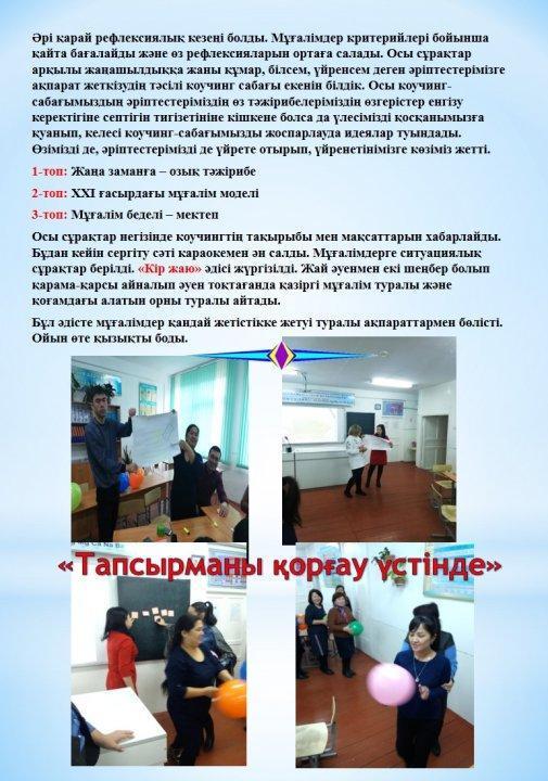 14 февраль 2019 100 1 2 3 4 5 Коучинг: «Ұстаздардың кәсіптік шеберлігін жетілдіруде жаңа әдістердің ролі»