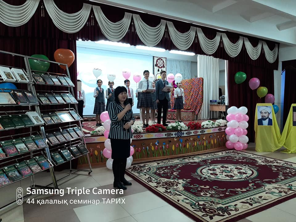 13 ақпан күні Тараз қаласы Шона Смаханұлы атындағы №44 орта мектебінде "ТАРИХ САБАҒЫНДА БІЛІМ АЛУШЫЛАРДЫҢ БІЛІМ САПАСЫН КӨТЕРУ МАҚСАТЫНДА ІСКЕРЛІК ДАҒДЫЛАРЫН ҚАЛЫПТАСТЫРУ ЖОЛДАРЫ" атты қалалық семинар-практикум болып өтті.
