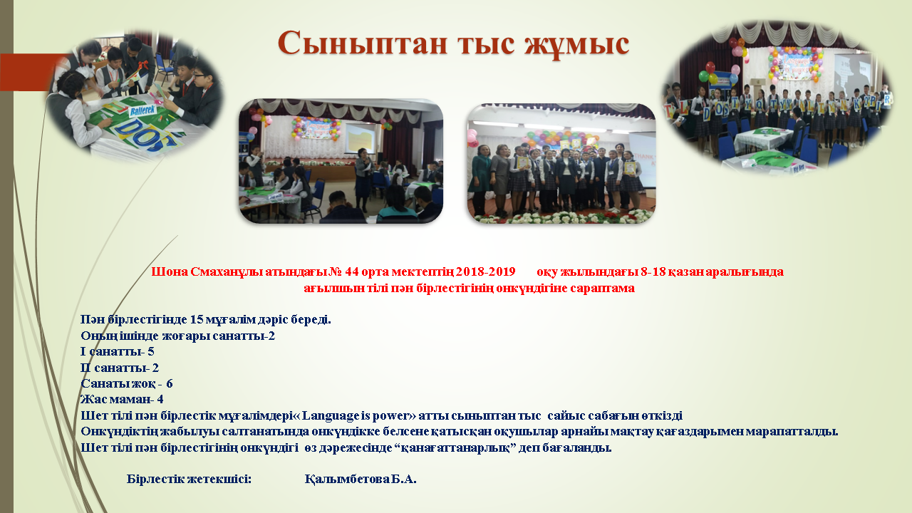 30 октябрь 2018 100 1 2 3 4 5 «Ағылшын тілі пән бірлестігінің жаңартылған білім беру арқылы оқушылардың білім сапасын арттыру» тақырыбында өткізілген онкүндігі
