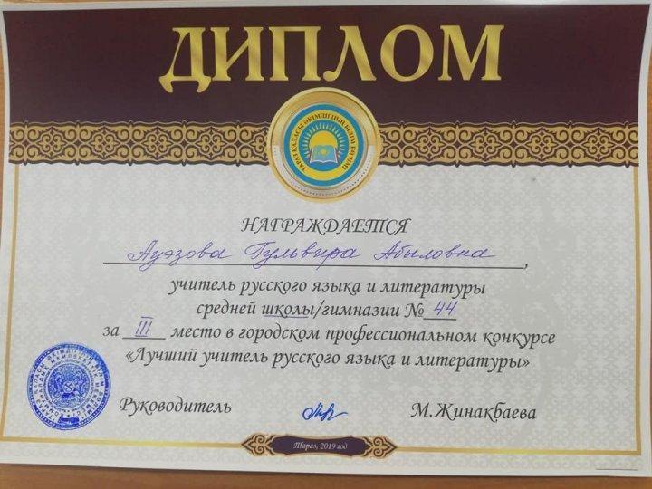 Ш. Смаханұлы атындағы №44 орта мектебінің орыс тілі мен әдебиеті пәнінің мұғалімі Ауэзова Гульвира Абыловна қалалық білім бөлімі ұйымдастырып өткізген "Лучший учитель русского языка и литература" кәсіптік байқауында өзінің білімін дәлелдеп жүлделі ІІІ орынды иеленді. Әріптесімізге тек шығармашылық табыс тілейміз, жеңісті күндері көп болсын!