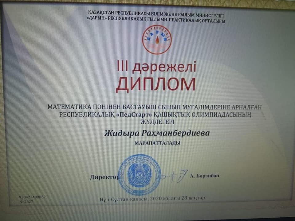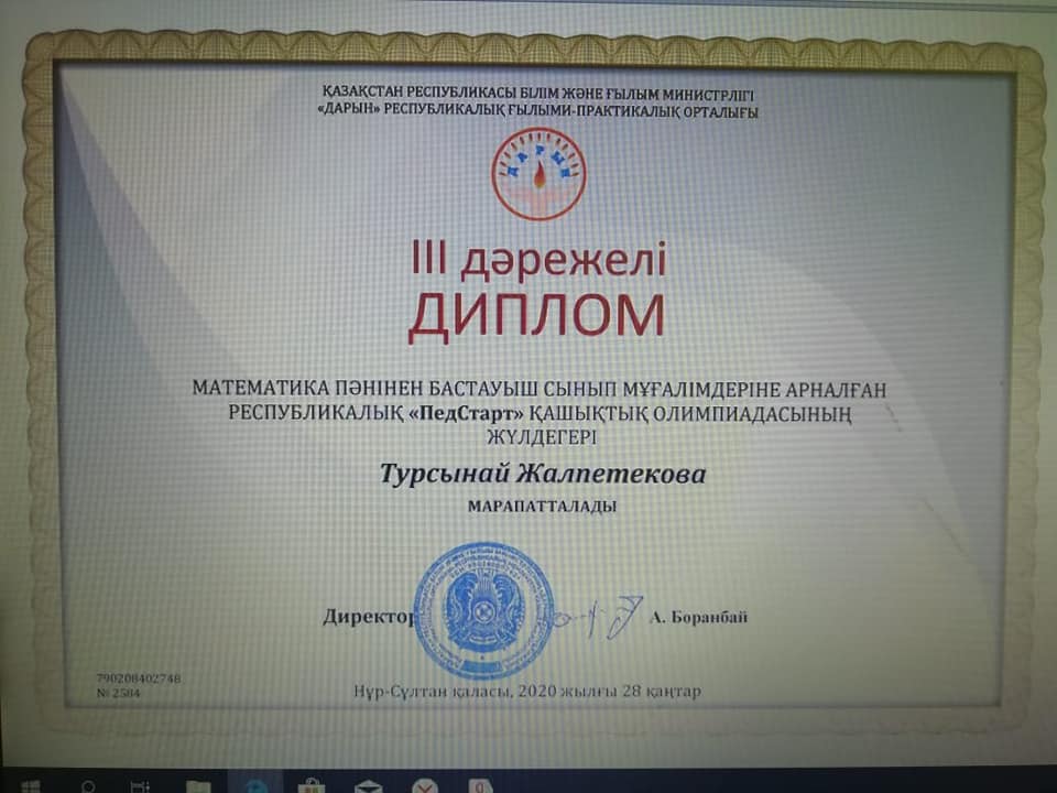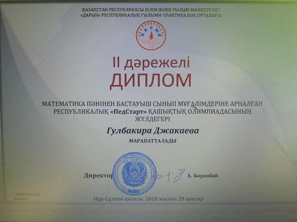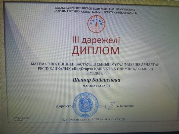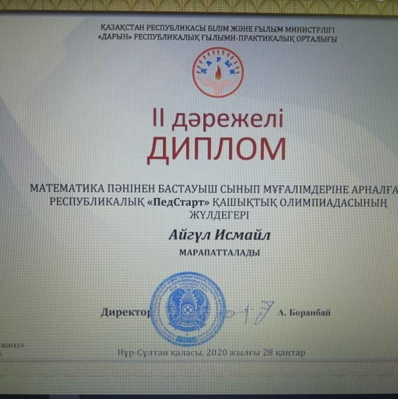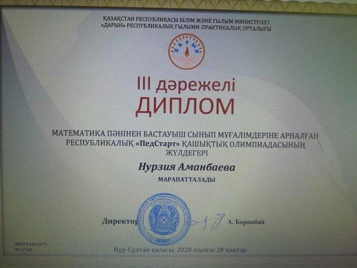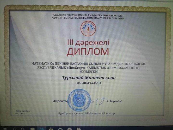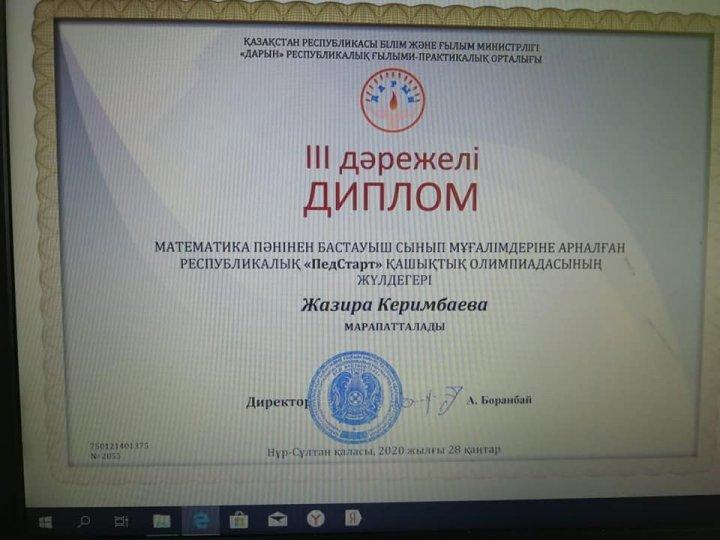 Математика пәнінен бастауыш сынып мұғалімдеріне арналған Республикалық "ПедСТАРТ" қашықтық олимпиадасының жүлдегерлері бастауыш сынып пән мұғалімдерін құттықтаймыз
