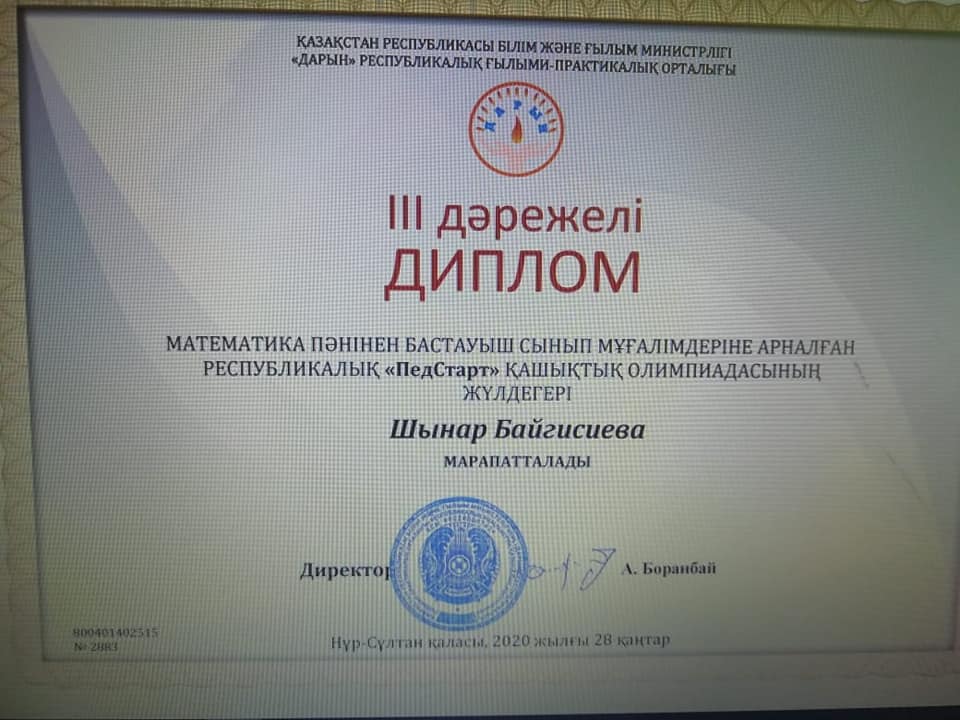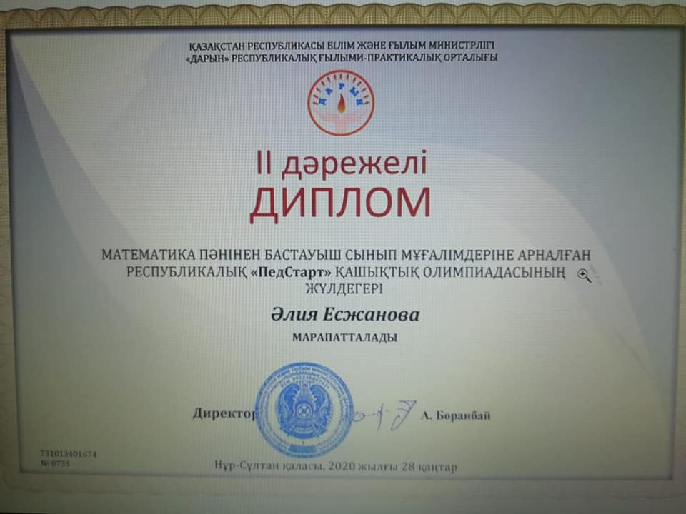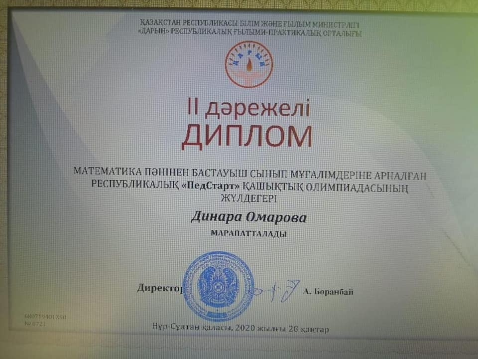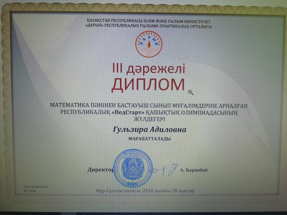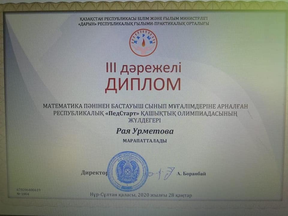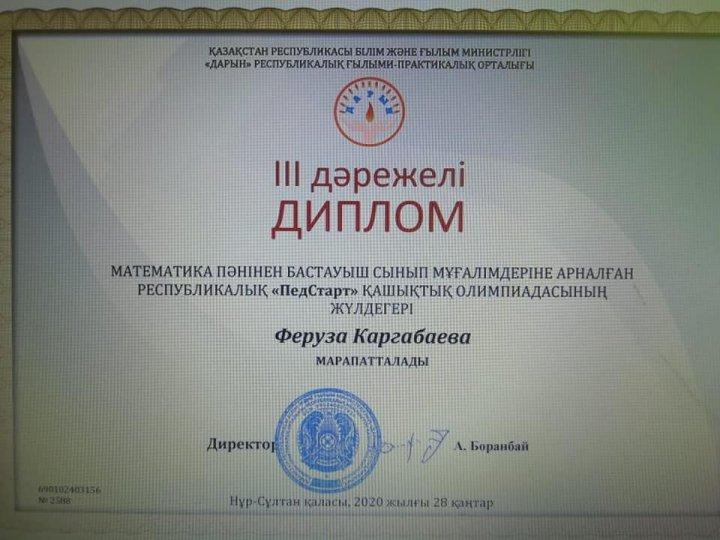 Математика пәнінен бастауыш сынып мұғалімдеріне арналған Республикалық "ПедСТАРТ" қашықтық олимпиадасының жүлдегерлері бастауыш сынып пән мұғалімдерін құттықтаймыз