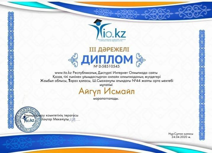 Тараз қаласы Шона Смаханұлы атындағы №44 орта мектебінің бастауыш сынып мұғалімдері республикалық қашықтықтан өткен пән олимпиадасында жүлделі орындарға ие болды. Құттықтаймыз!! 1. Аманбаева Нурзия- ІІ орын🥈 2. Исмаил Айгүл-ІІ,ІІІ орын 🥈🥉 3.Рахманбердиева Жадыра-І орын🥇