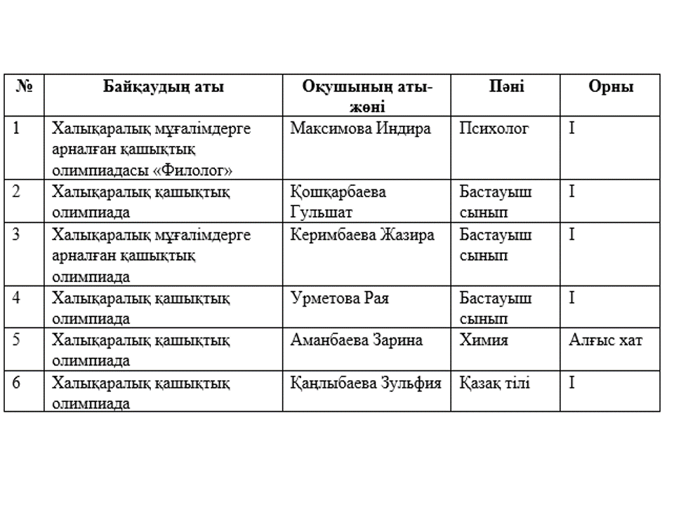 12 январь 2018 100 1 2 3 4 5 2017-2018 оқу жылында Халықаралық қашықтық олимпиадада жүлделі орын иеленген педагогтар