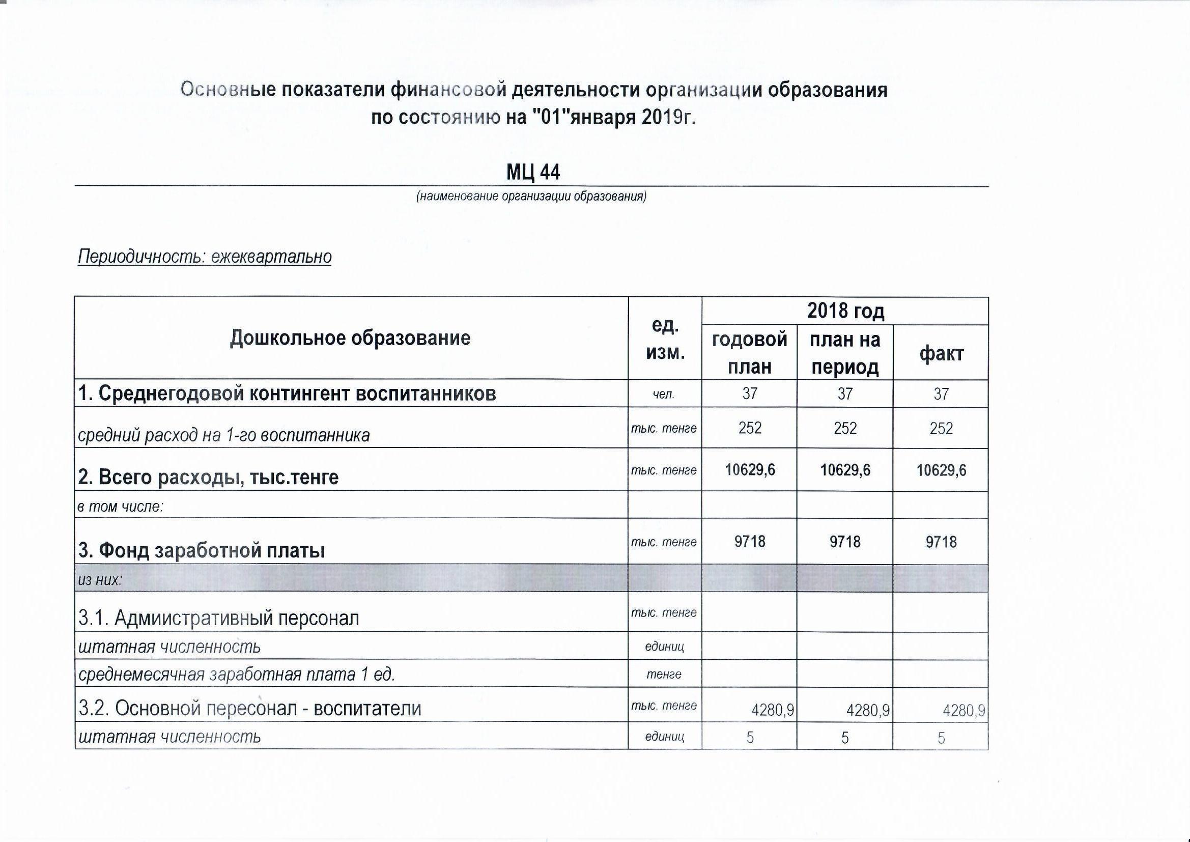 Основные показатели финансовой деятельности "Мини центра" » СШ №44