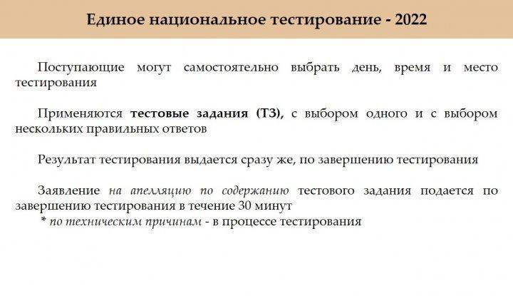 ЕДИНОЕ НАЦИОНАЛЬНОЕ ТЕСТИРОВАНИЕ - 2022