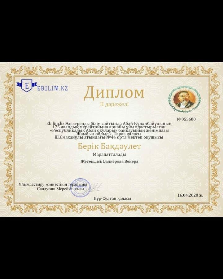 1.Берік Бақдәулет ІІ-орын