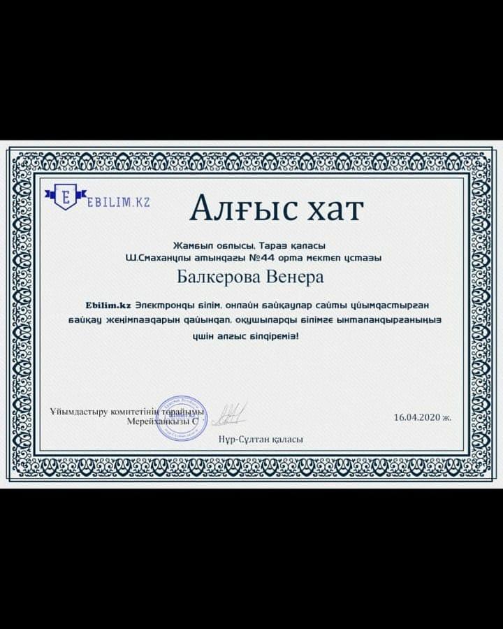 Жетекшісі: Балкерова Венера.