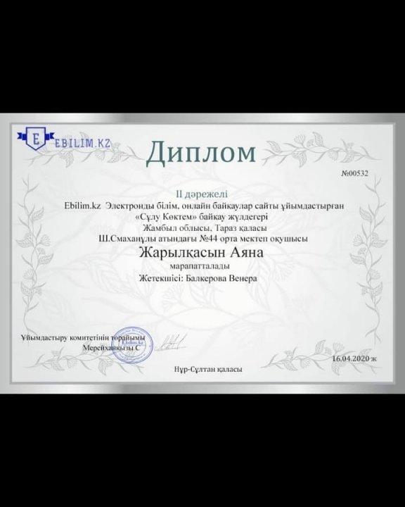 2.Жарылқасын Аяна ІІ-орын