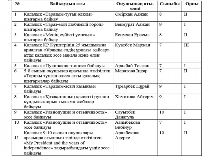 12 январь 2018 100 1 2 3 4 5 2017-2018 оқу жылында Қалалық байқаулардан жүлделі орын иеленген оқушылар