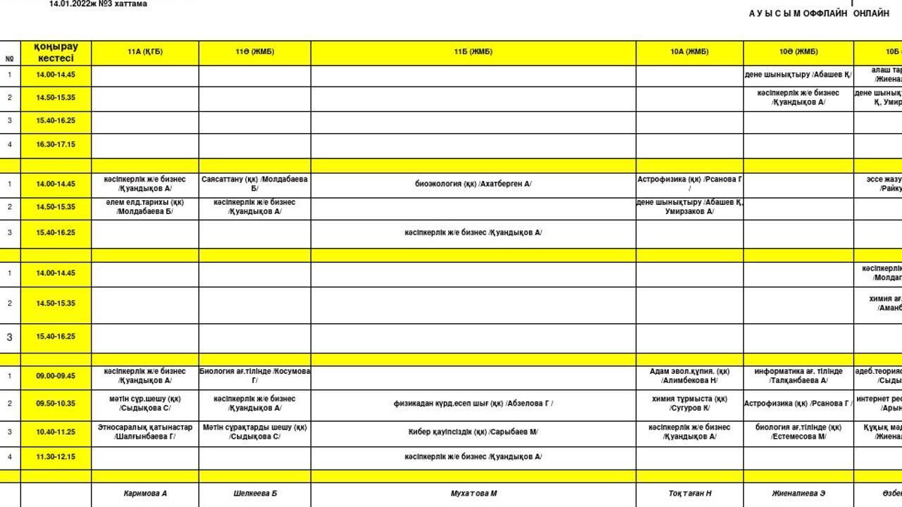 » » » Сабақ кестесі ОФФЛАЙН ІІІ тоқсан