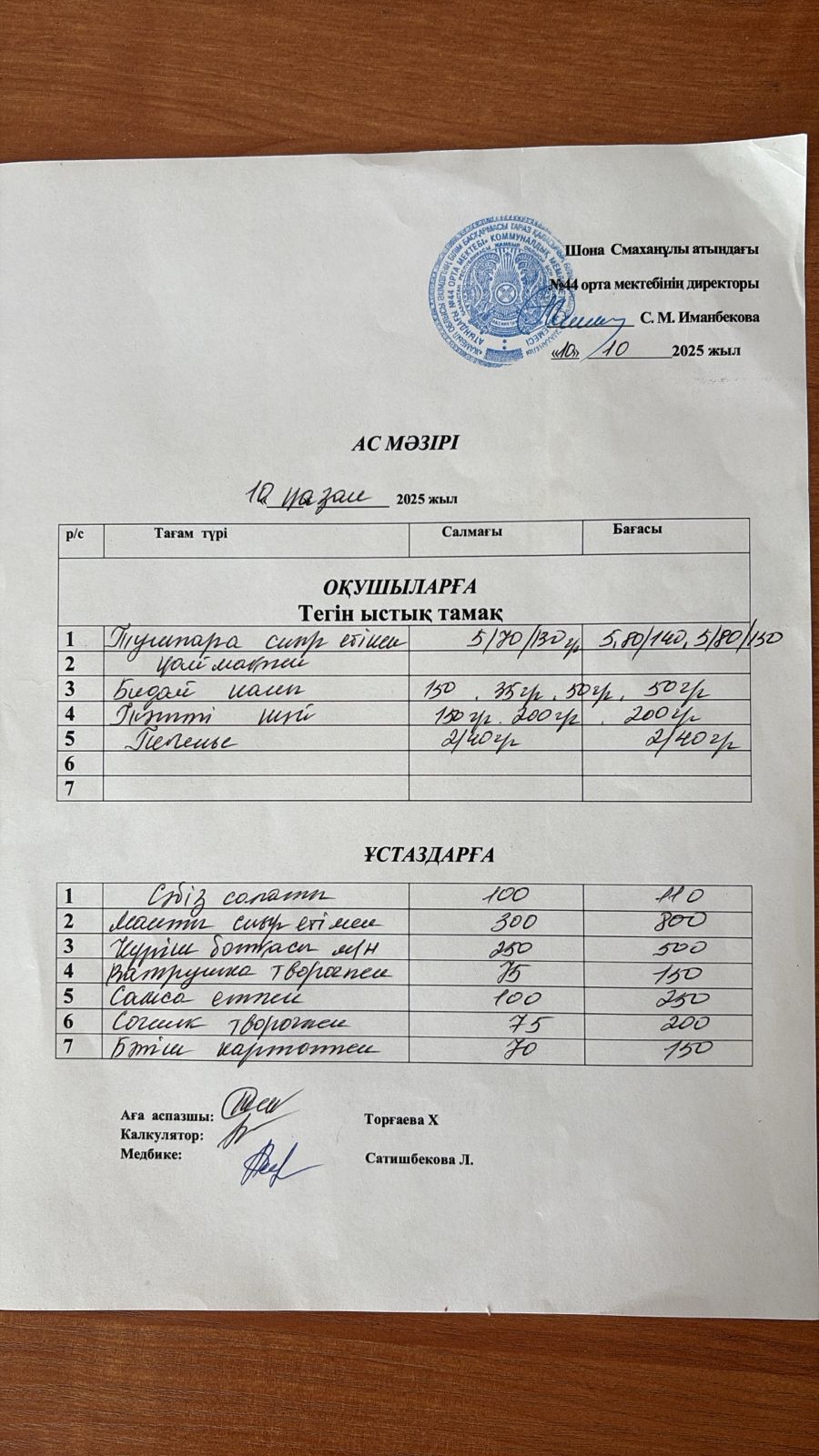 06 ноябрь 2023 Ас мәзірі