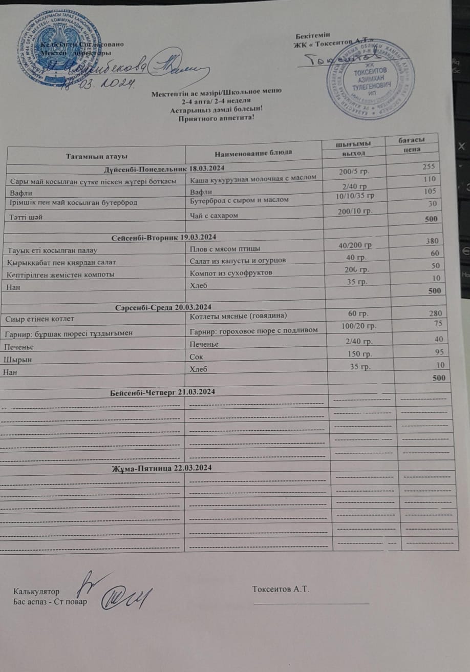 20 ноябрь 2023 Тамақтану
