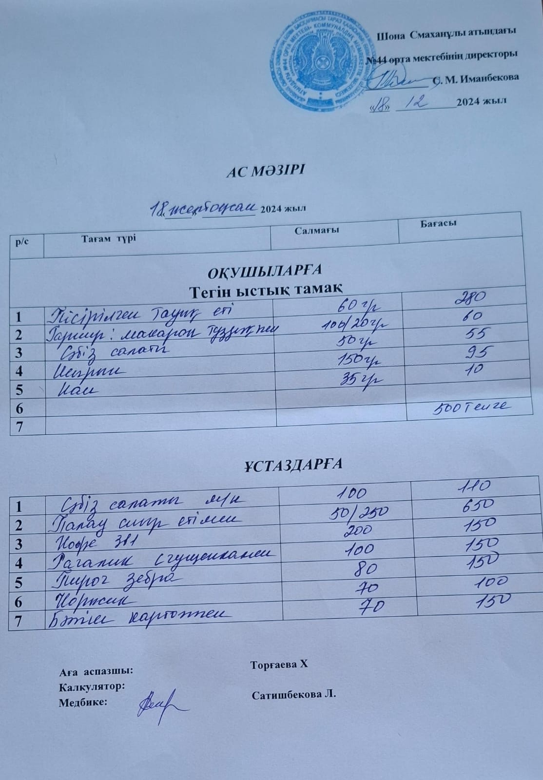 12 декабрь 2024 тамақтану