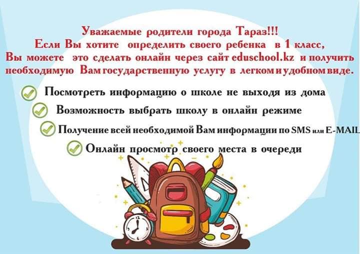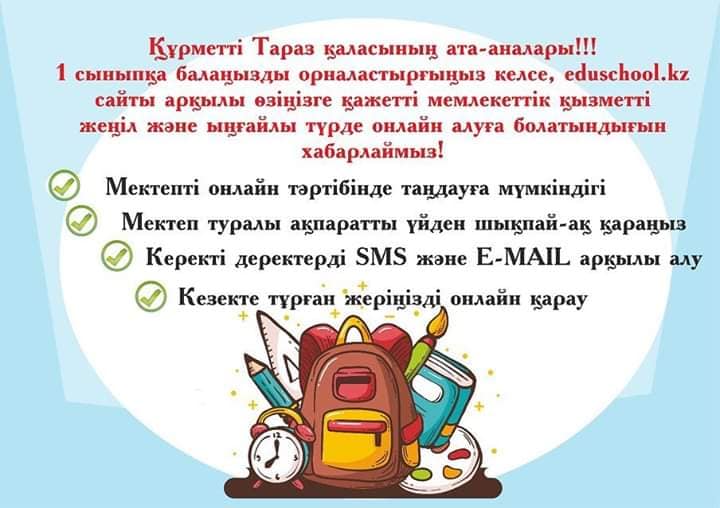 Ата-аналарға ХАБАРЛАНДЫРУ! ХХІ ғасыр ақпарат дамыған заманының тағыда бір көрінісі. Енді ата-аналар өз балаларын мектептерге 1-сыныпқа онлайн түрде орналастыра алады. Бұл да бір ЦИФРЛЫ ҚАЗАҚСТАН жобасының бір бөлігі деп білеміз.